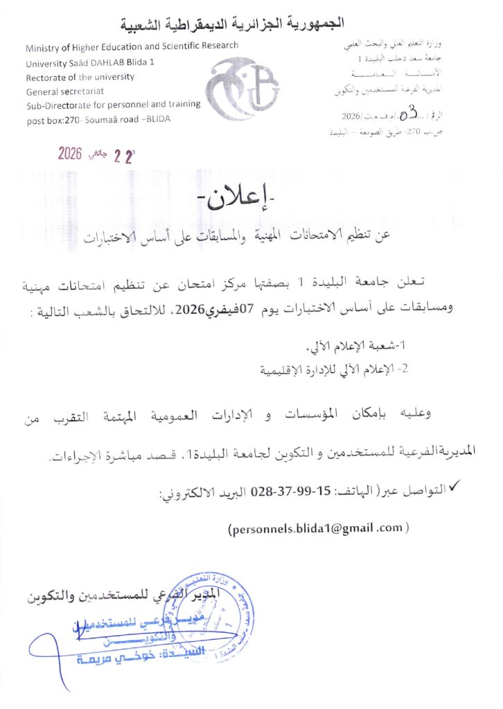 اعلان عن تنظيم امتحانات و مسابقات مهنية
