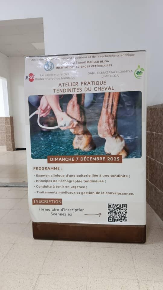 احتضن معهد العلوم البيطرية بجامعة البليدة 1 يومي 6 و7 ديسمبر فعاليات الورشة الوطنية الثالثة حول تربية وطب الخيول، التي نُظّمت من طرف مخبر البيوتكنولوجيا الحيوانية (LBA) وبالشراكة مع المزرعة الجامعية للمتيجة، في إطار دعم البحث العلمي وتطوير الممارسات البيطرية المتخصصة في مجال الخيول.