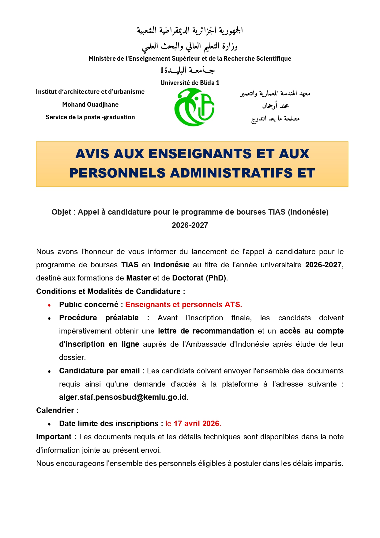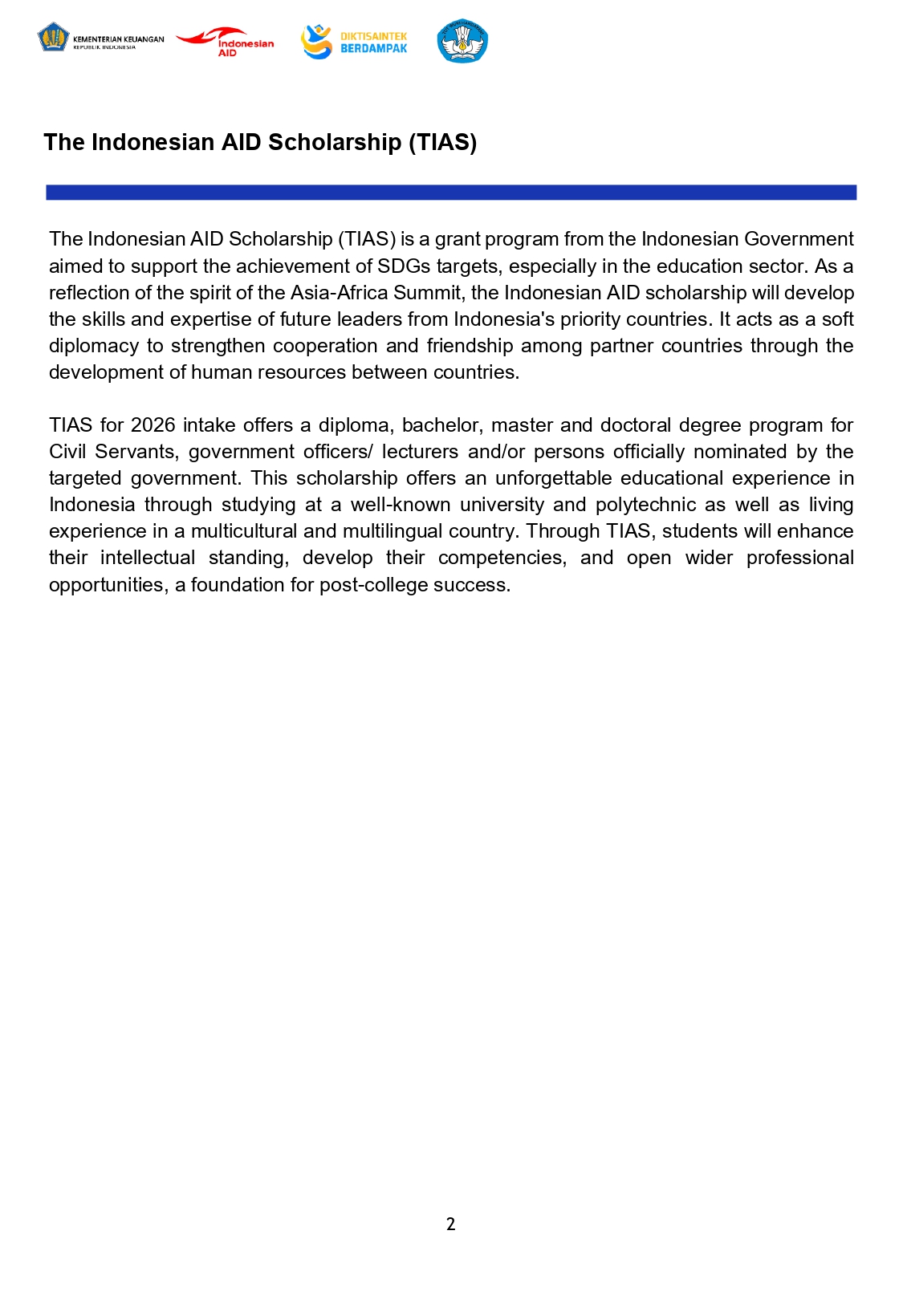 دعوة للترشح لبرنامج منح الحكومة الإندونيسية (TIAS)