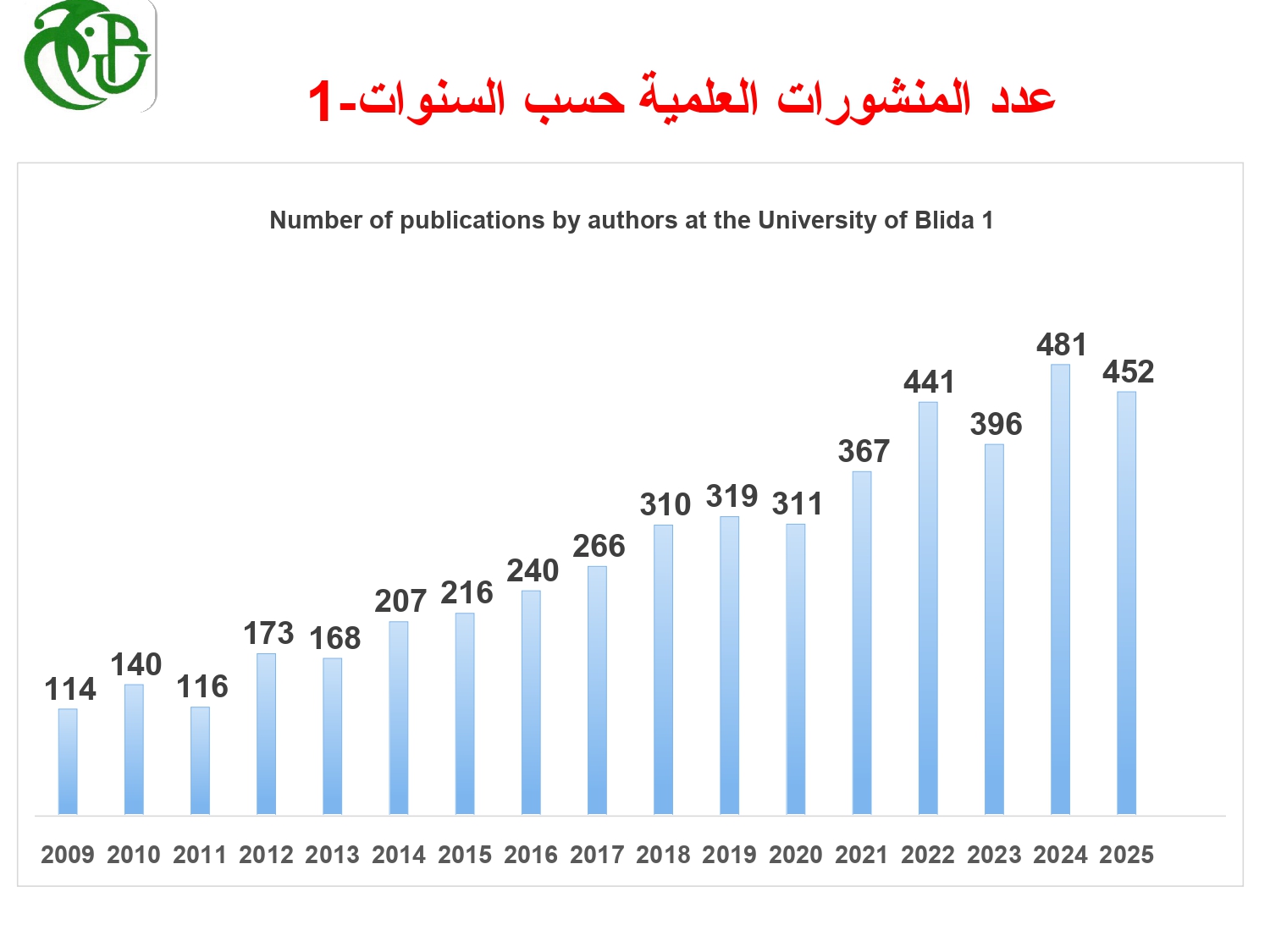 المنشورات الصفحة الرئسية كلمة نائب المدير الأرقام الرئيسة مهام وهياكل نيابة المديرية مهام نيابة المديرية الهيكل التنظيمي التكوين فيما بعد التدرج أرقام ومعلومات التكوين في الدكتوراه الاستمارات والنماذج التأهيل الجامعي مفهوم وشروط التأهيل دليل إجراءات الترشح الرزمانة البحث العلمي مخابر البحث المنصات التكنولوجية مشاريع البحث المنشورات دعوات وطنية ودولية للمشاريع الأخلاقيات والأداب الجامعية ميثاق طالب الدكتوراه ميثاق الأخلاقيات والاداب الجامعية الوثائق وثائق قابلة للتنزيل أرشيف الدفعات روابط مفيدة المنشورات العلمية في قاعدة Scopus