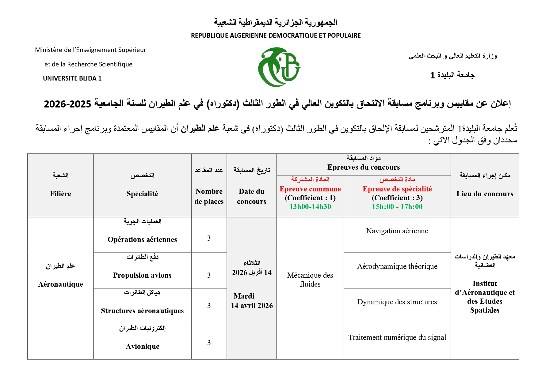 إعلان مسابقة الدكتوراه في الطيران 2026