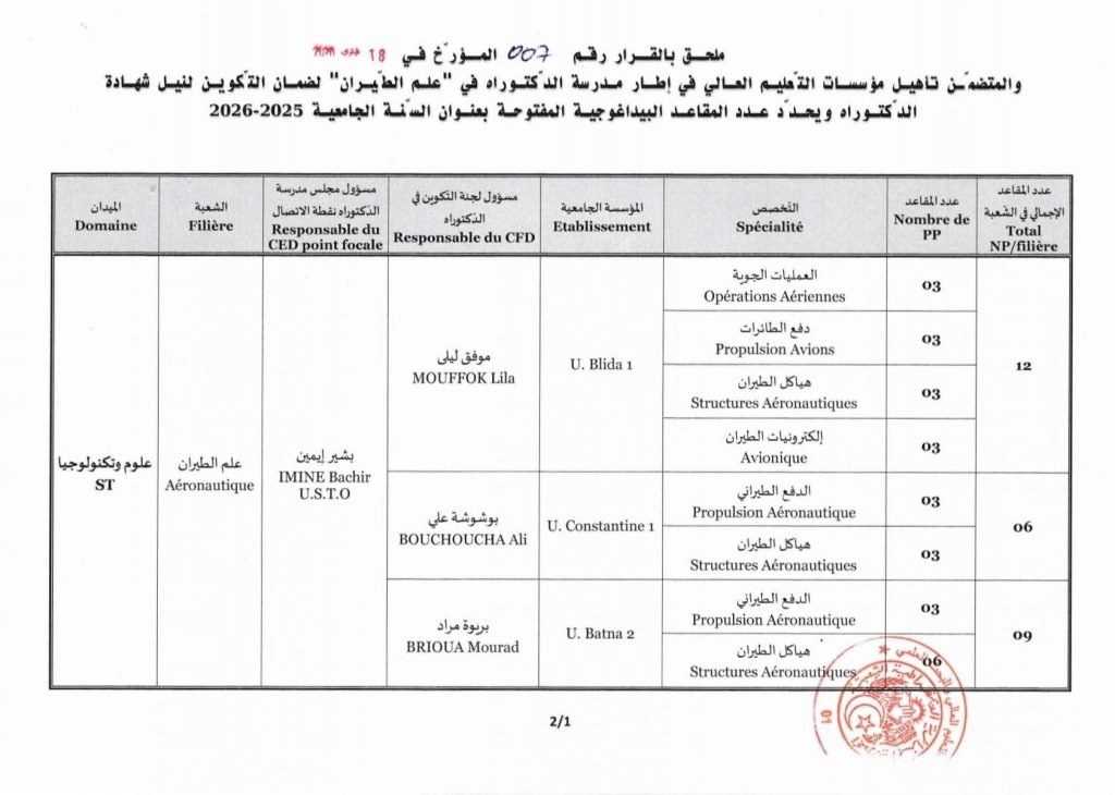 تجدون الملحق بقرار مؤسسات التاهيل و عدد المقاعد البيداغوجية زائد رزنامة المسابقة