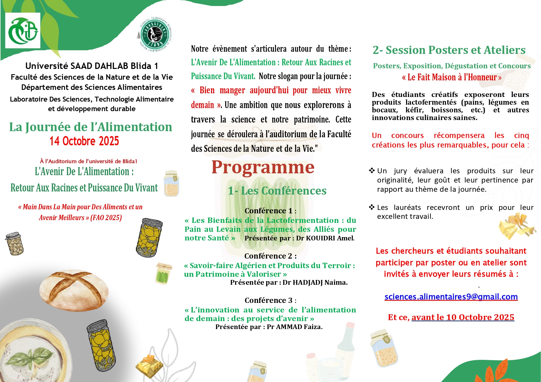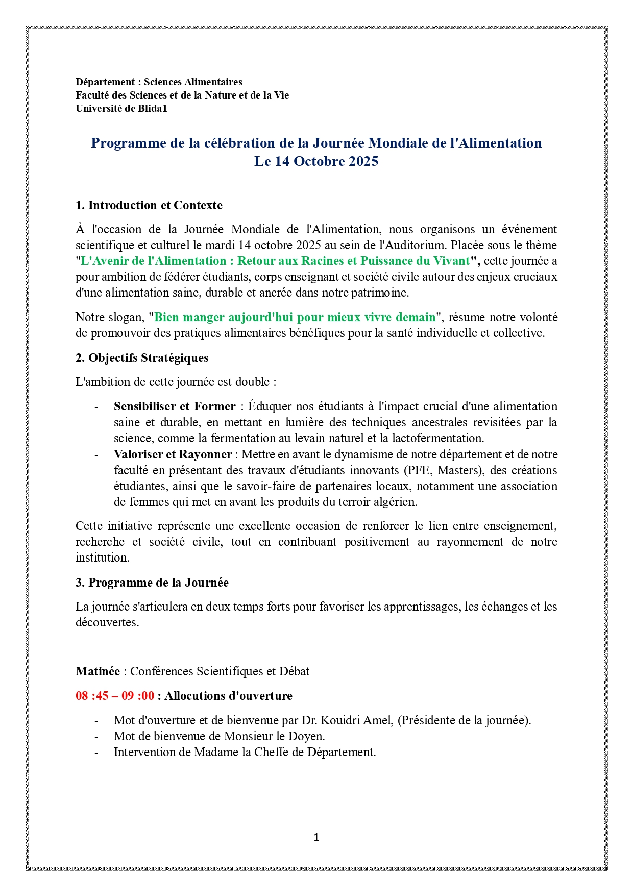 Université SAAD DAHLAB Blida 1 – Faculté des Sciences de la Nature et de la Vie
