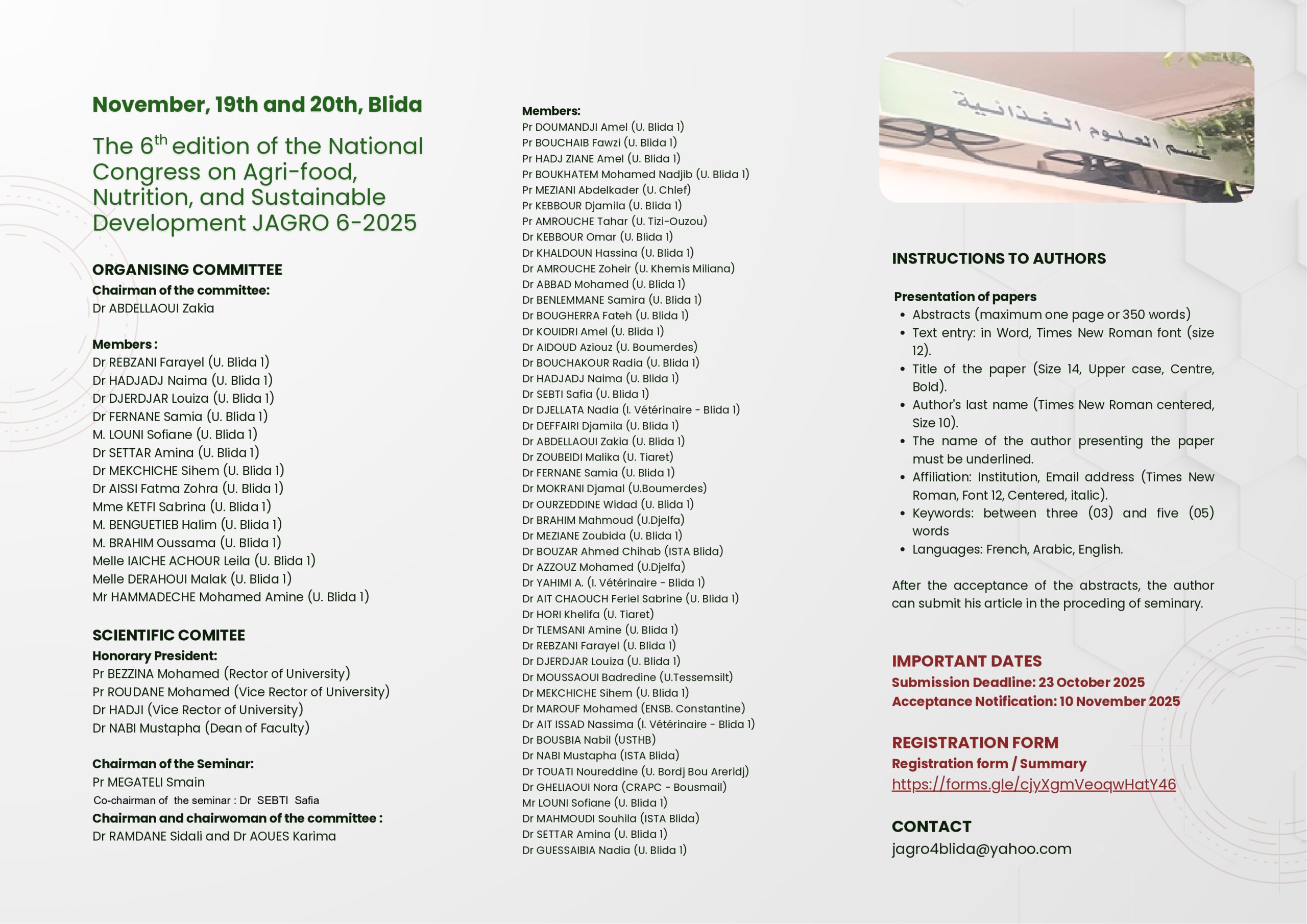 Saad DAHLAB UNIVERSITY Blida 1, Faculty of Natural and Life Sciences,
