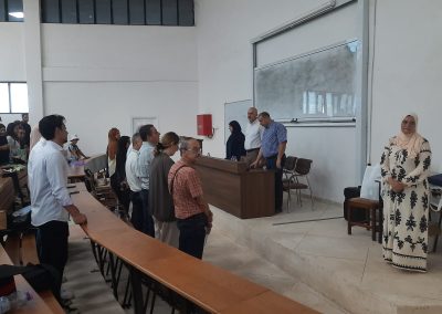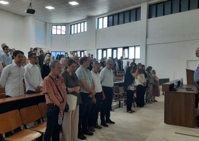 بدأ الحفل بالإستماع إلى النشيد الوطني الجزائري، مما خلق جوًا من الاحترام والفخر الوطني. بعد ذلك، ألقى مدير المعهد، السيد عادل جلال، كلمة ترحيبية للضيوف والأسر والطلاب الحاضرين. وهنأ بحرارة الخريجين الجدد على جهودهم ومثابرتهم طوال مسيرتهم الجامعية.