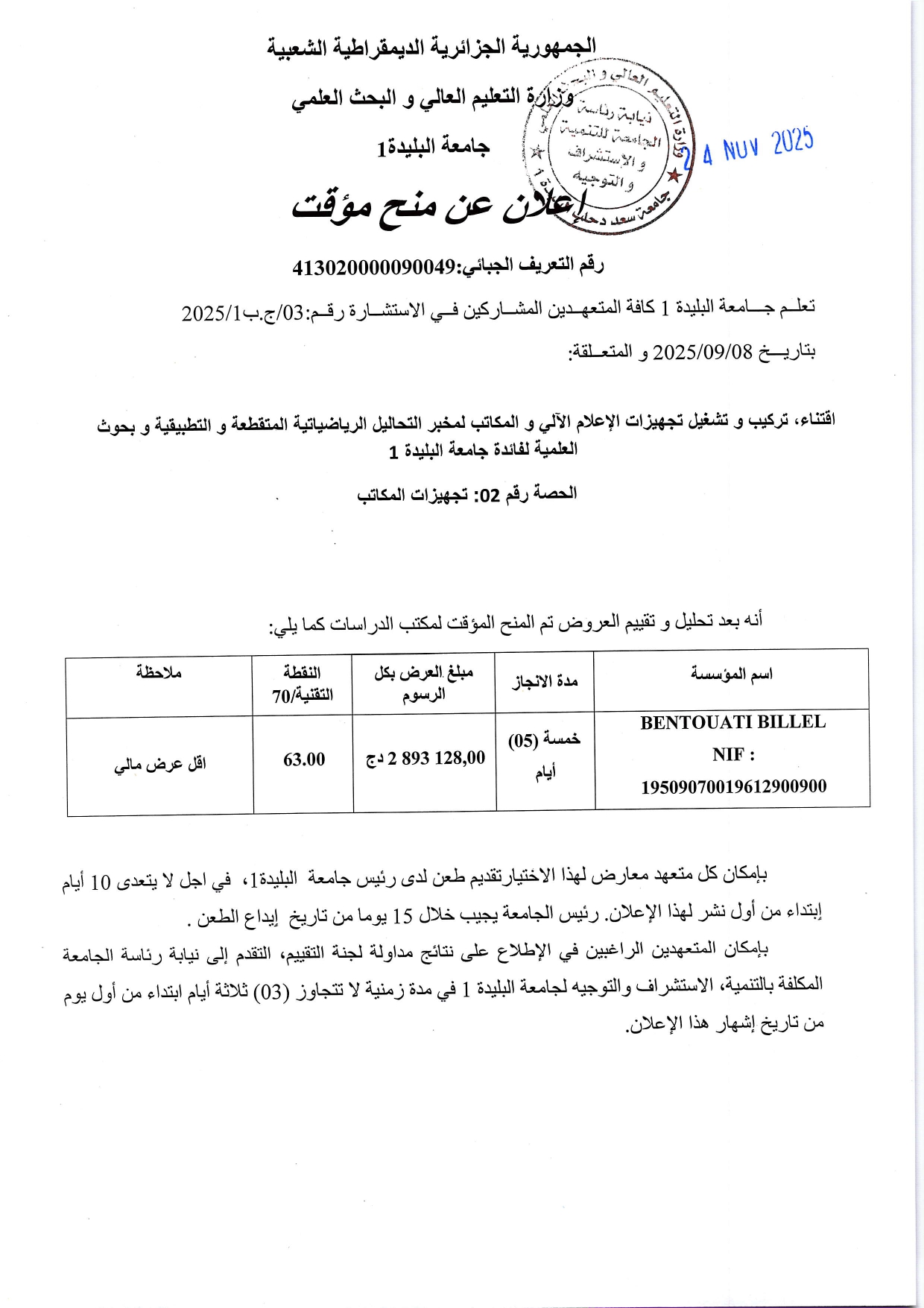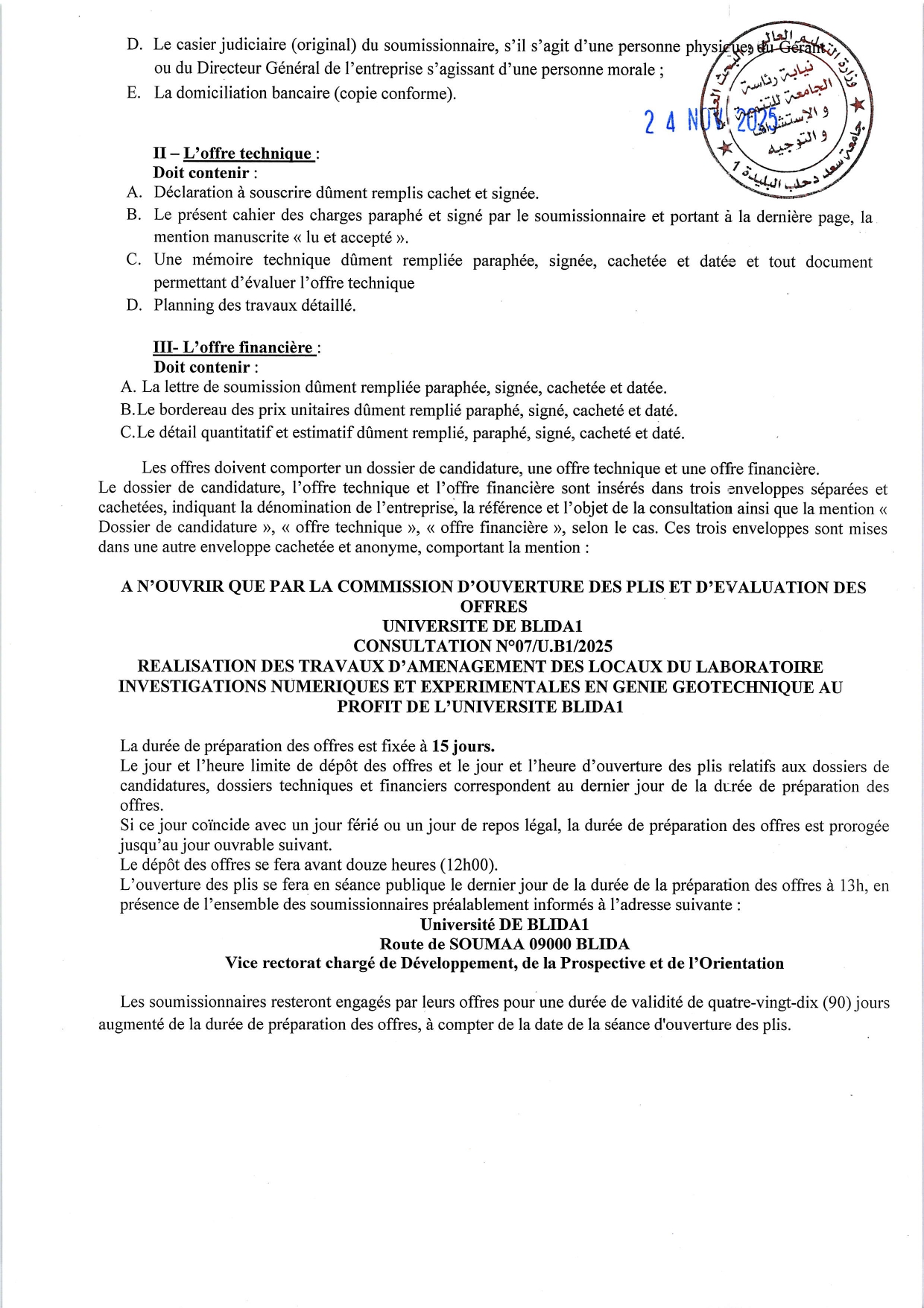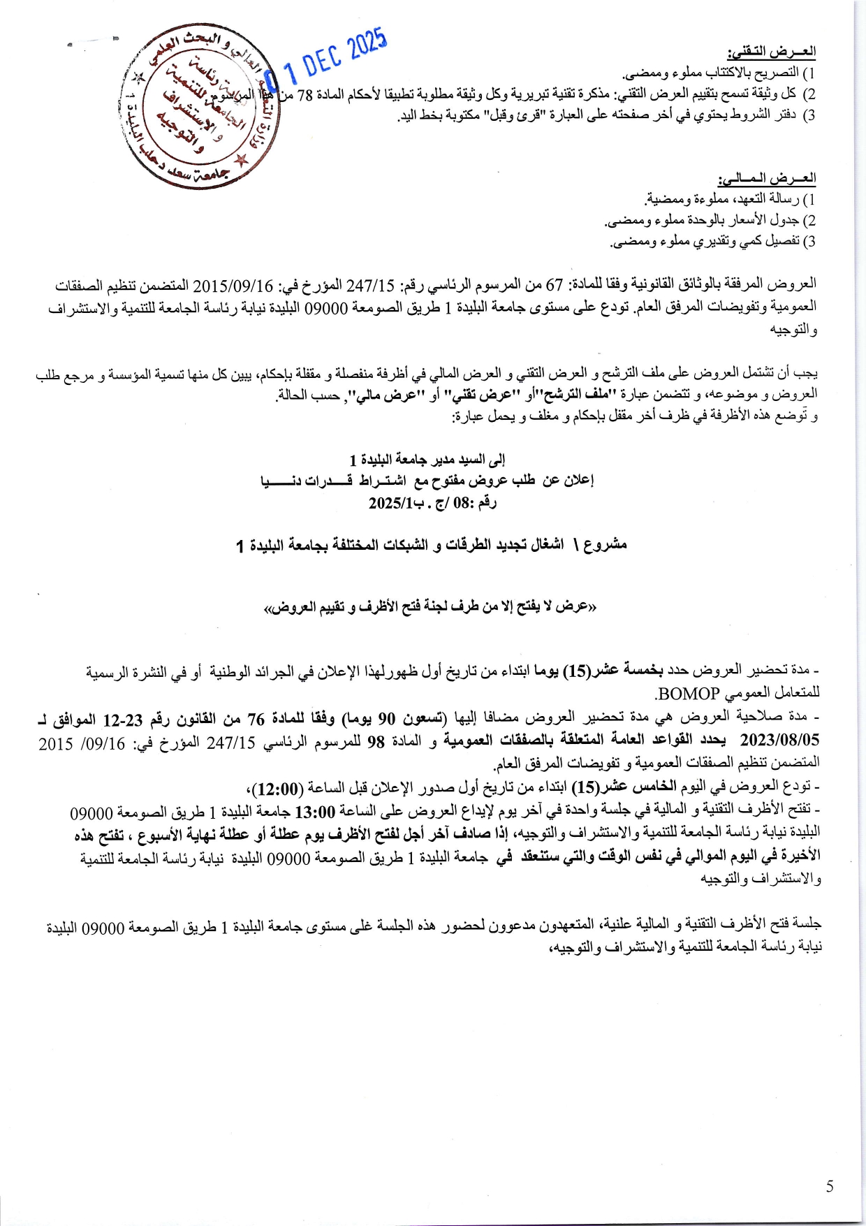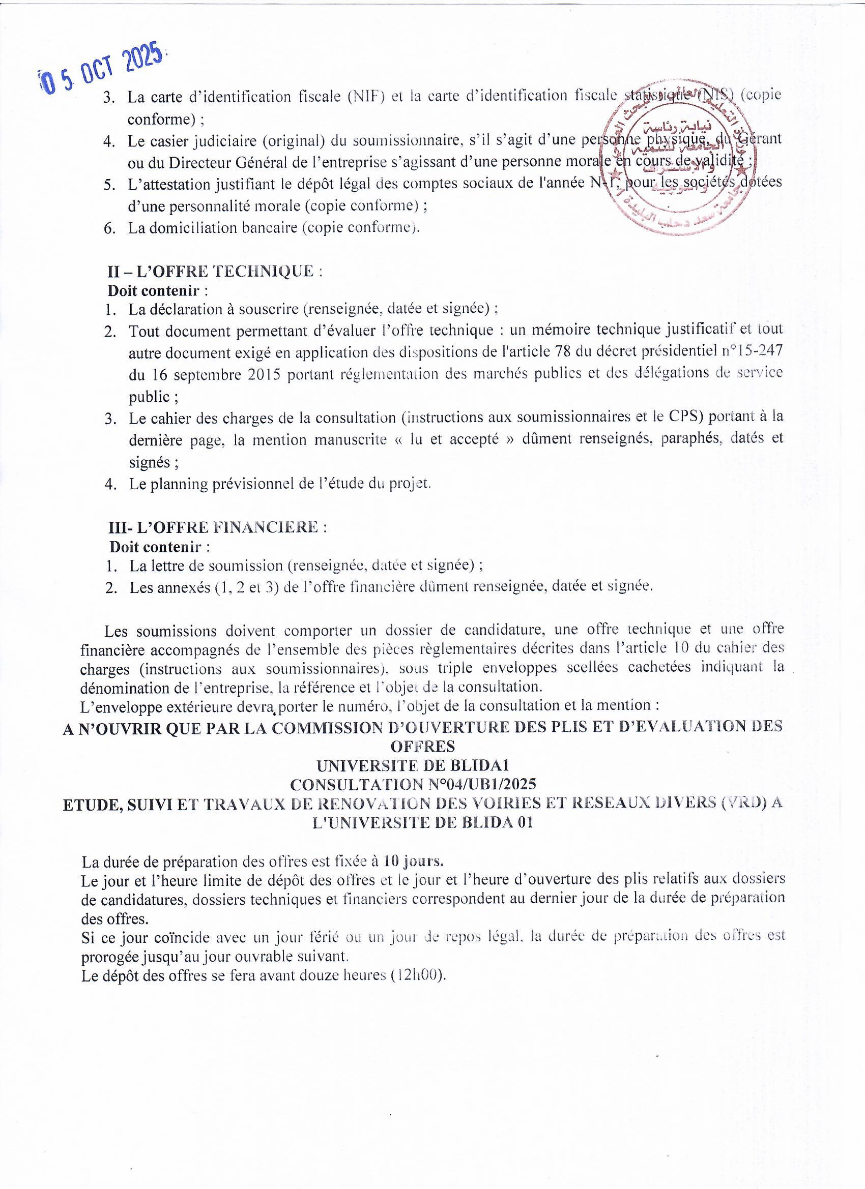 إعلان عن استشارة رقم 05/ج-ب 1-2025