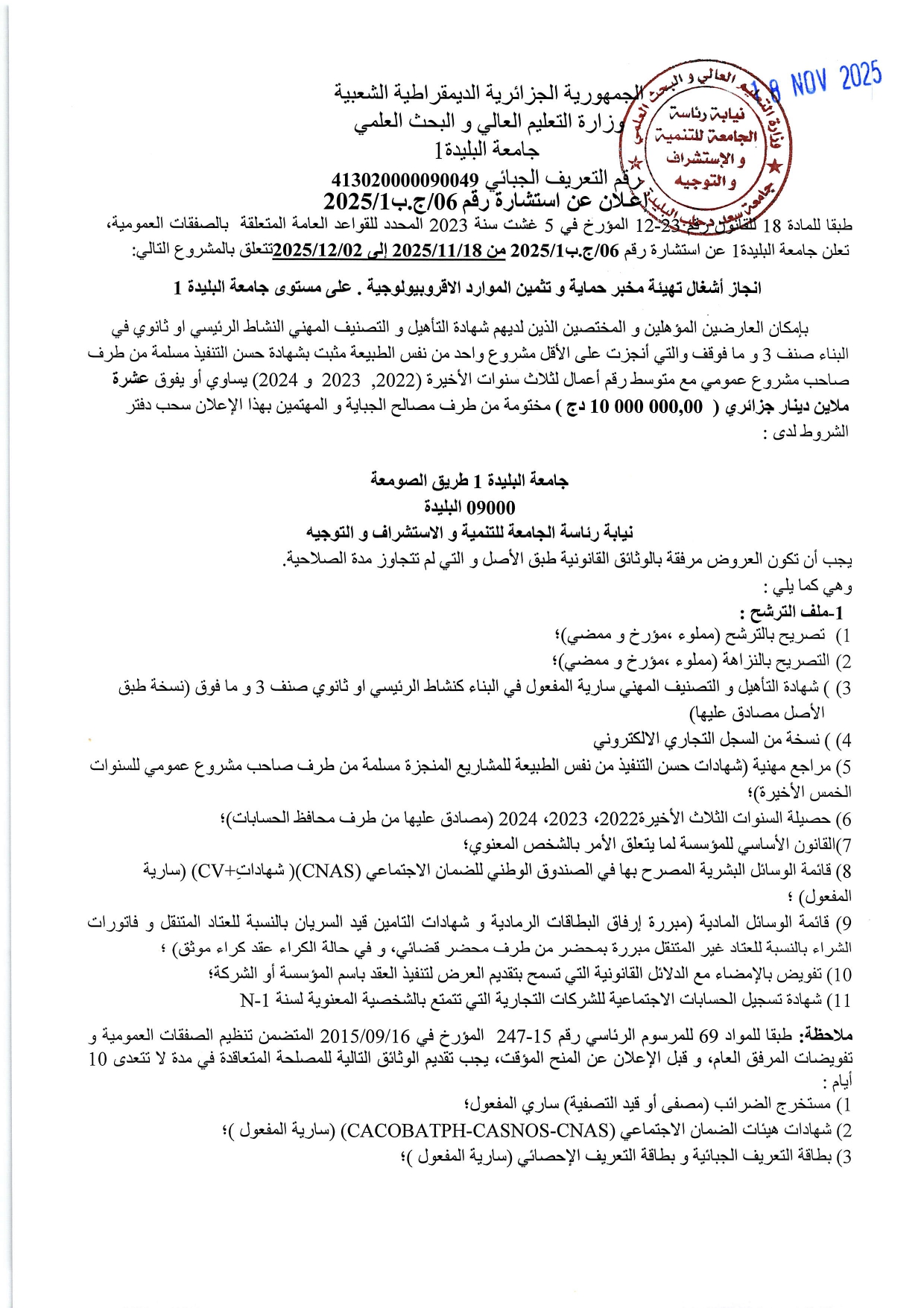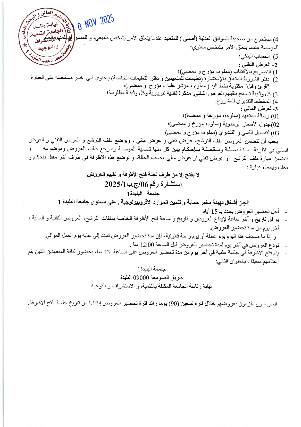 إعلان عن استشارة رقم 06/ج-ب 1-2025