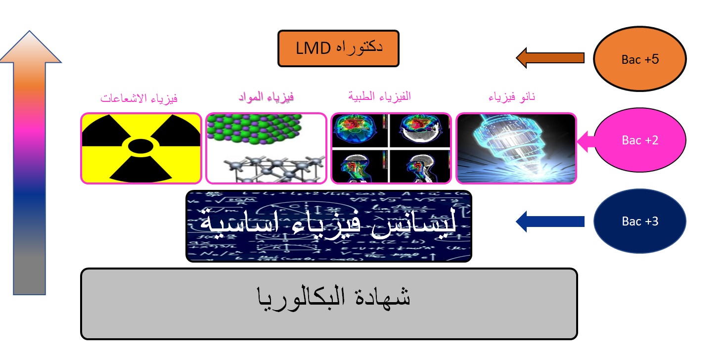 يقترح قسم الفيزياء برنامج لتكوين ليسانس أكاديمي تخصص فيزياء أساسية و تطبيقية و اربع برامج لتكوين الماستر تخصص فيزياء المواد، الفيزياء طبية، نانو فيزياء و فيزياء الإشعاعات التي يتم اختيارها وفقا لإحتياجات الطلبة و الاستيعاب المؤسساتي.